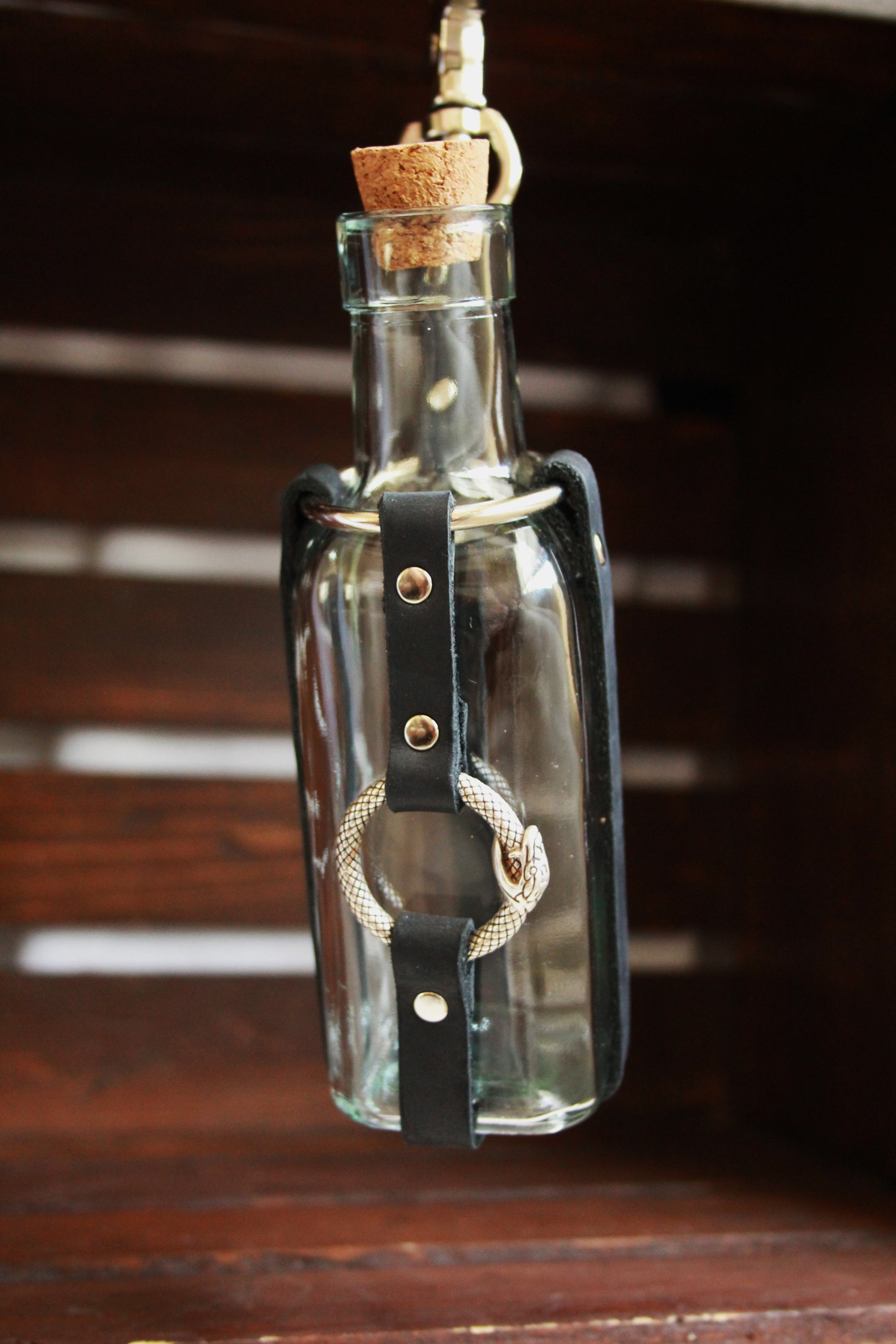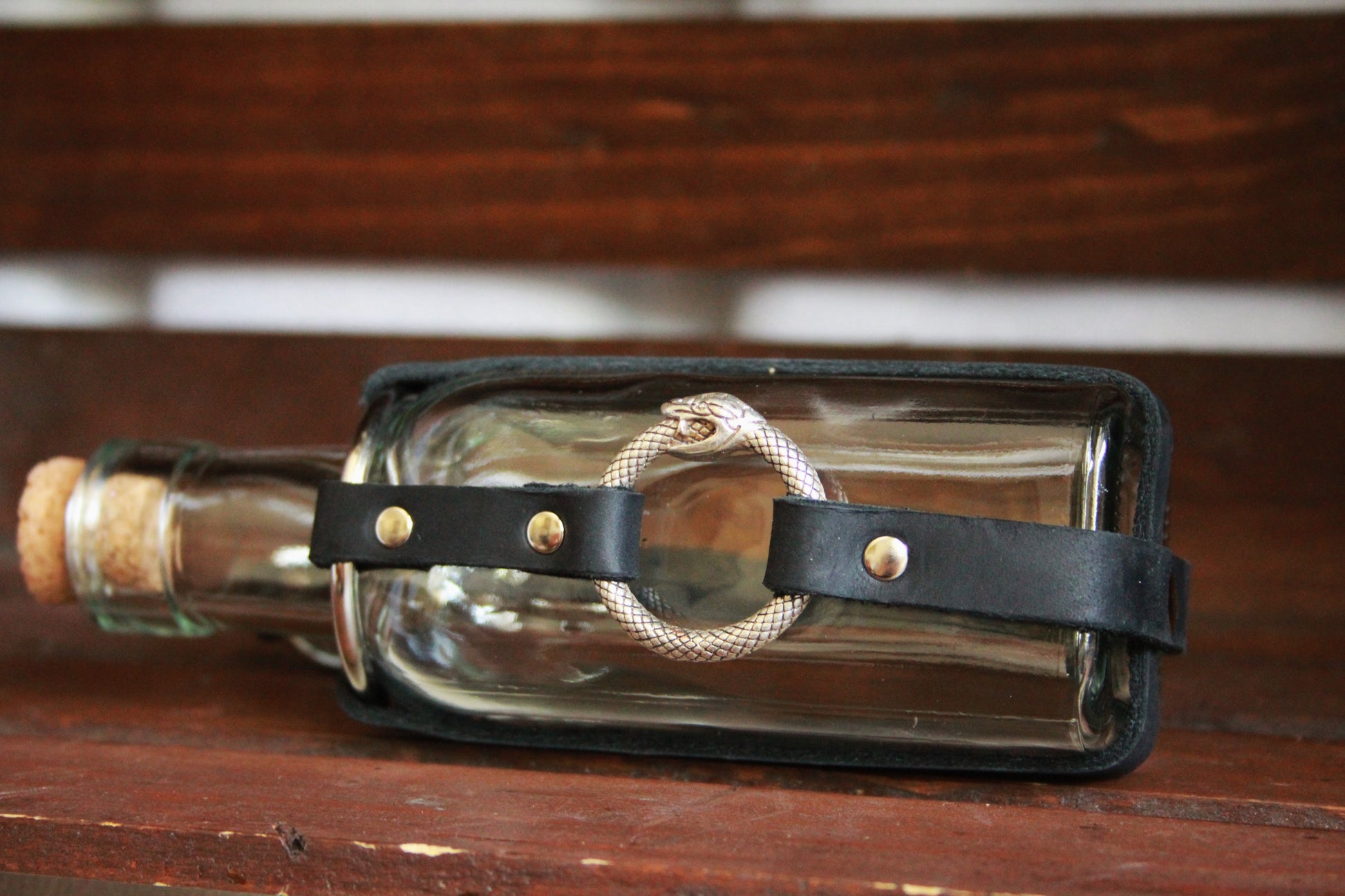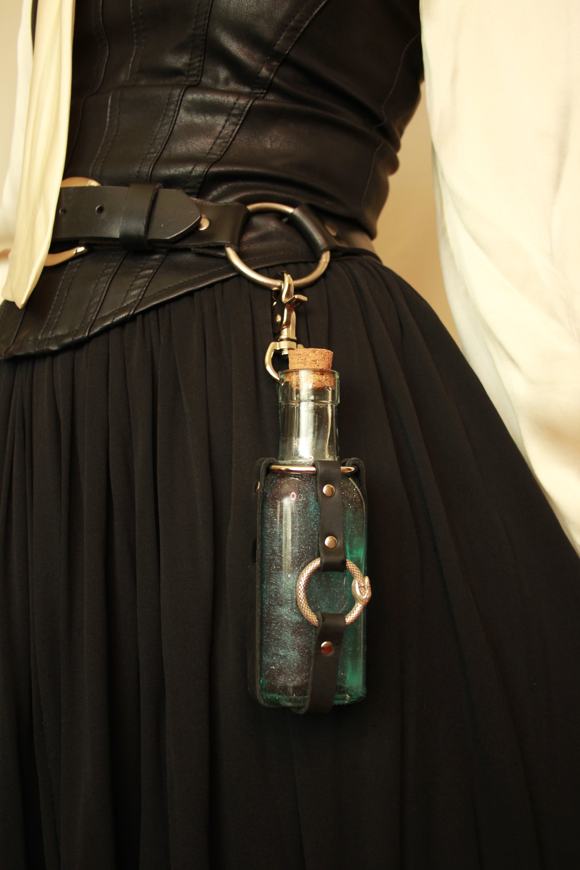 Introducing the Lady's Elixir Bottle - a captivating blend of mystique and practicality. This enigmatic bottle, nestled snugly within its leather embrace is your key to a world of enchantment.