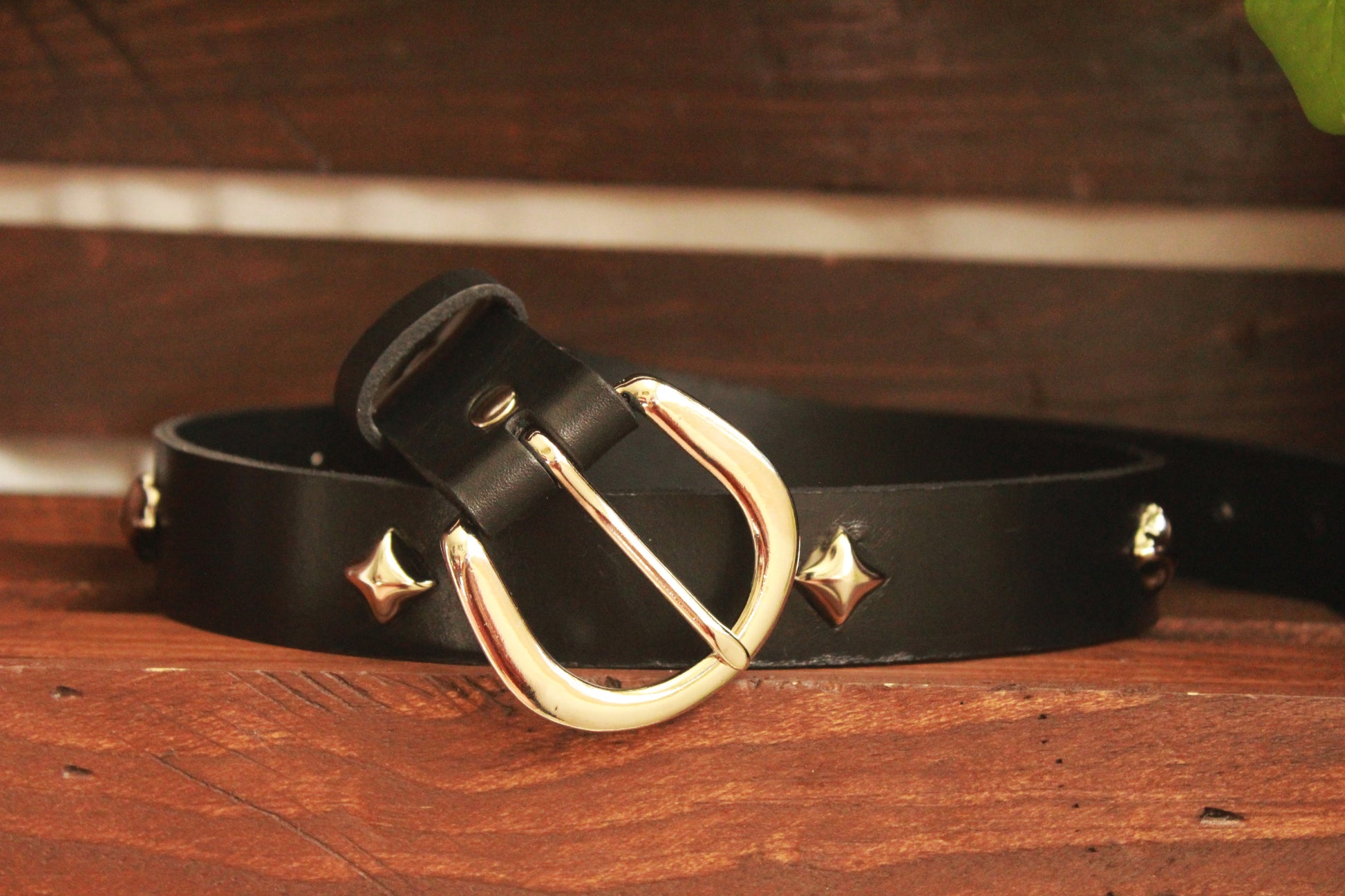 Behold The North Star Belt - a tribute to the rebellious spirit and punk days of our youth, crafted with the nostalgia of defiance in mind. This leather belt, adorned with diamond-shaped studs down the middle, is more than an accessory; it's a bold statement that echoes the echoes of rebellion.