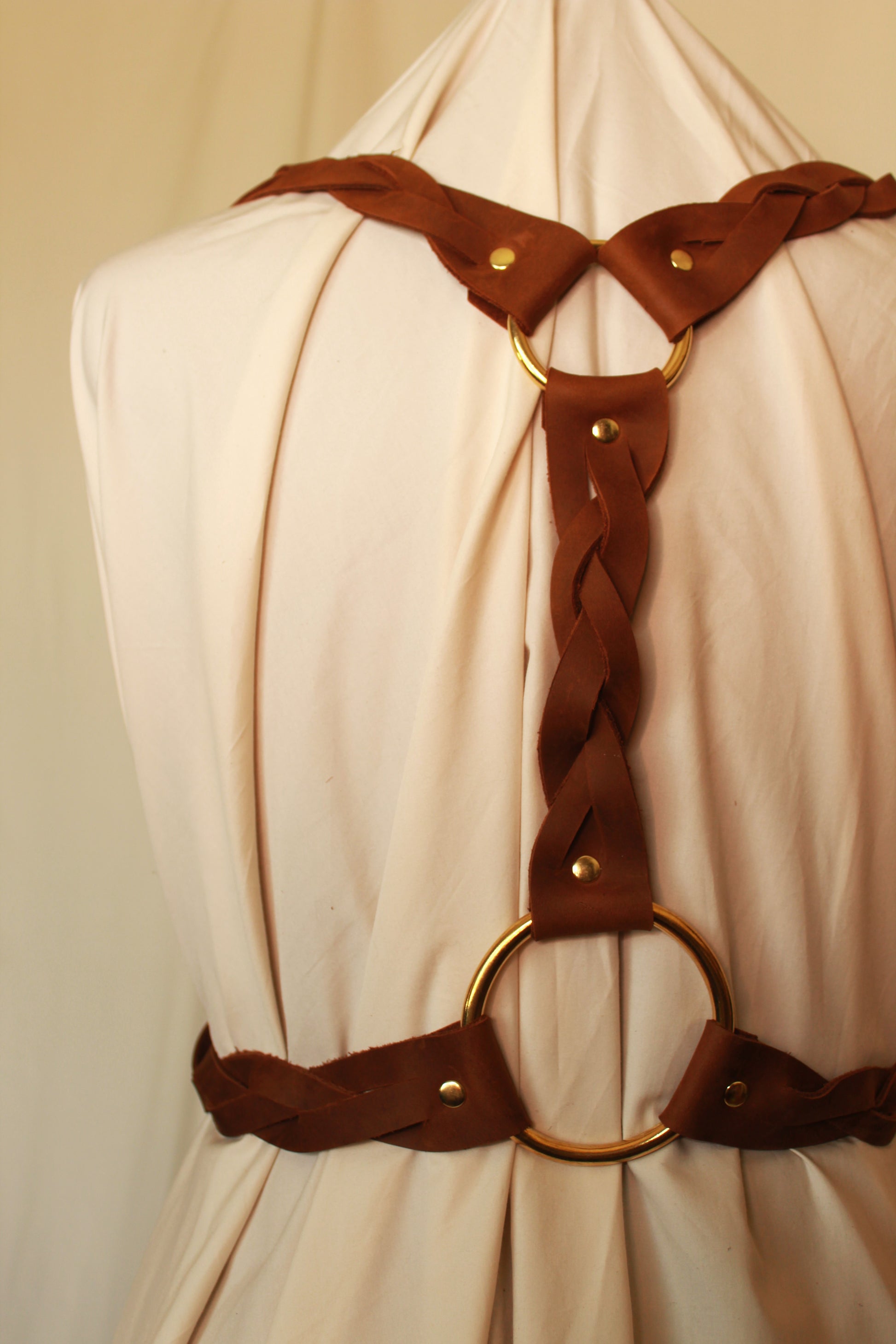 Introducing the Fiona Harness - a testament to the power of femininity, crafted with the grace and strength of a true lady in mind. This hand-braided leather harness embodies the spirit of a woman who is both fierce and feminine.